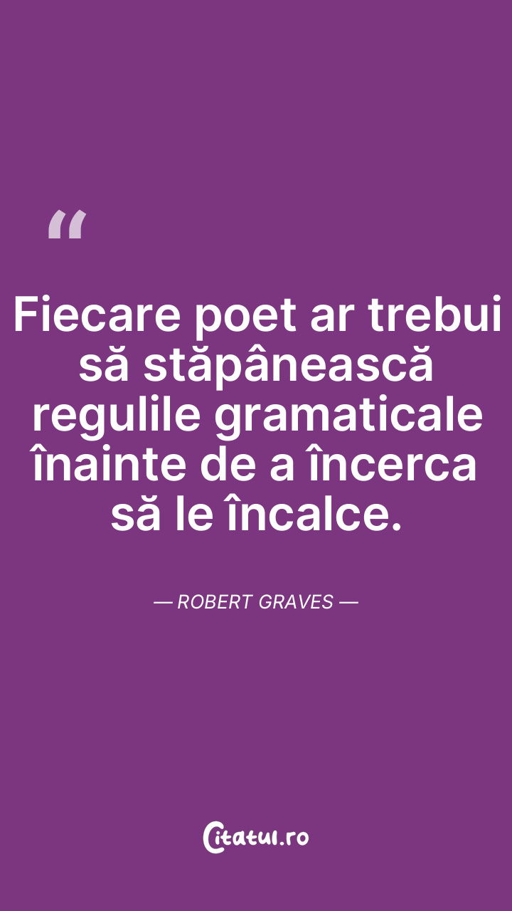 Fiecare poet ar trebui să stăpânească regulile gramaticale înainte de a încerca să le încalce. Robert Graves