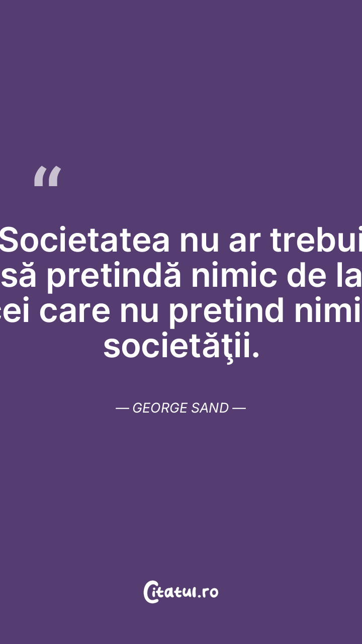 Societatea nu ar trebui să pretindă nimic de la cei care nu pretind nimic societăţii. George Sand