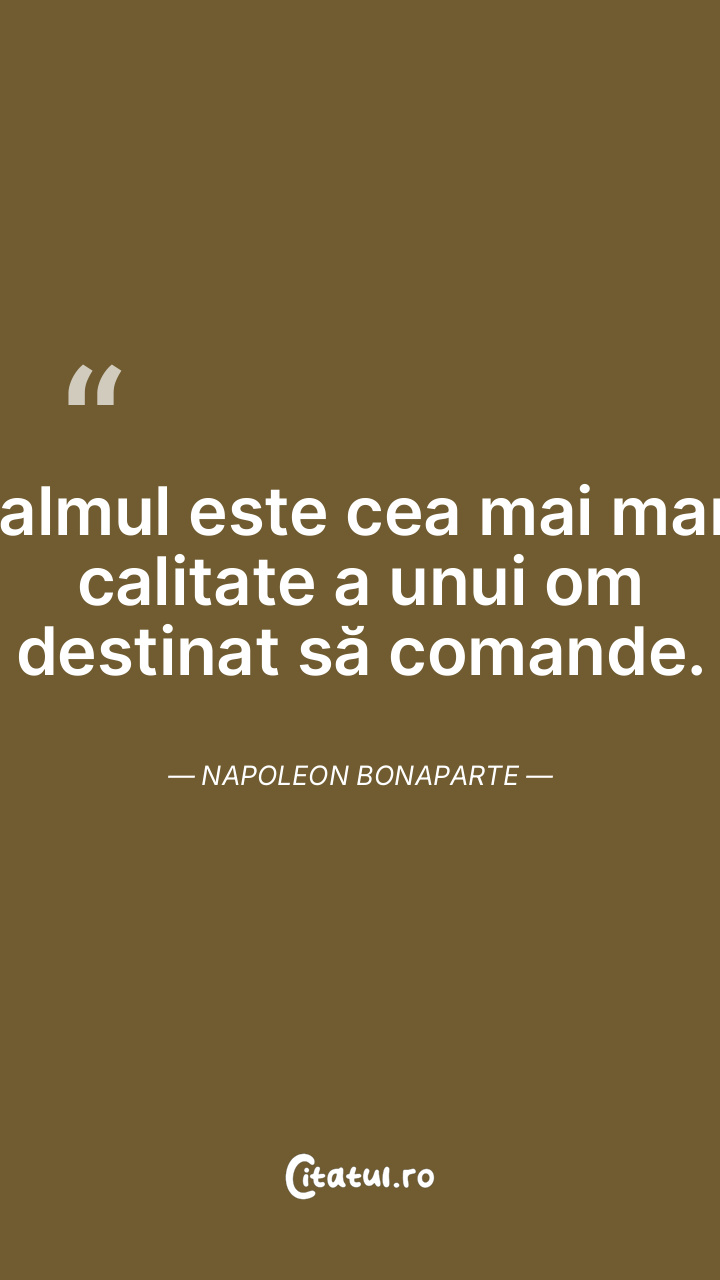 Calmul este cea mai mare calitate a unui om destinat să comande. Napoleon Bonaparte