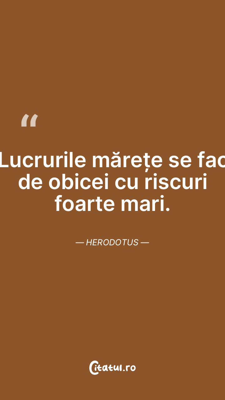 Lucrurile mărețe se fac de obicei cu riscuri foarte mari. Herodotus