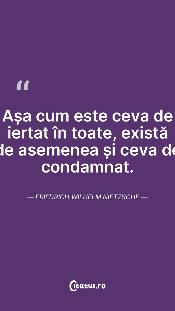 Așa cum este ceva de iertat în toate, există de asemenea și ceva de condamnat. Friedrich Wilhelm Nietzsche