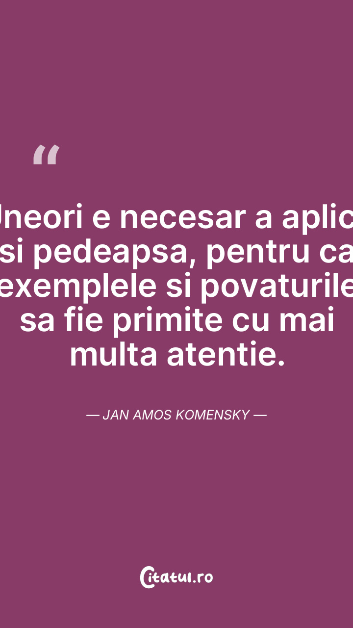 Uneori e necesar a aplica si pedeapsa, pentru ca exemplele si povaturile sa fie primite cu mai multa atentie. Jan Amos Komensky