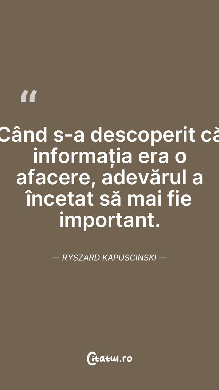 Când s-a descoperit că informația era o afacere, adevărul a încetat să mai fie important. Ryszard Kapuscinski