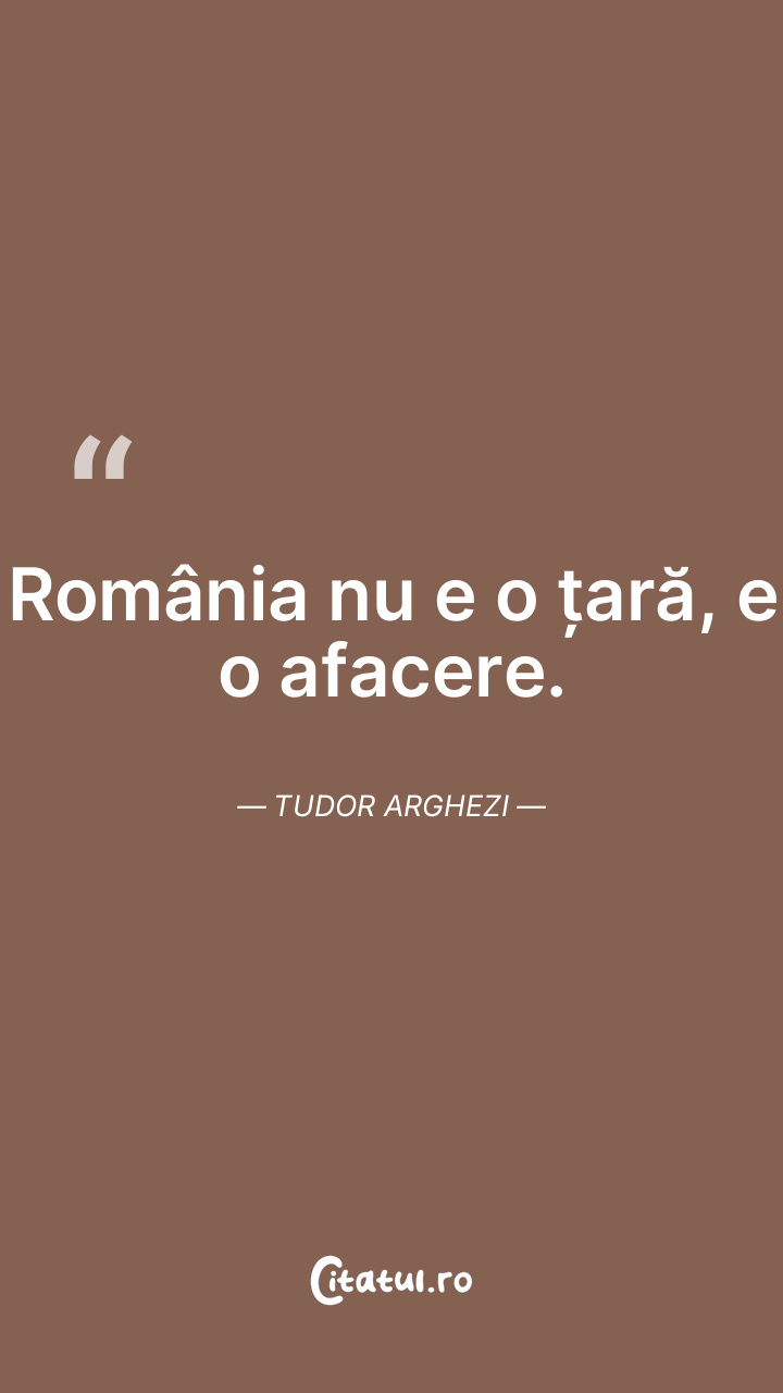 România nu e o țară, e o afacere. Tudor Arghezi ...