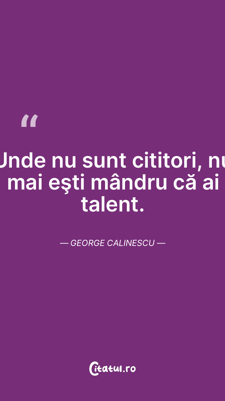 Unde nu sunt cititori, nu mai eşti mândru că ai talent. George Calinescu