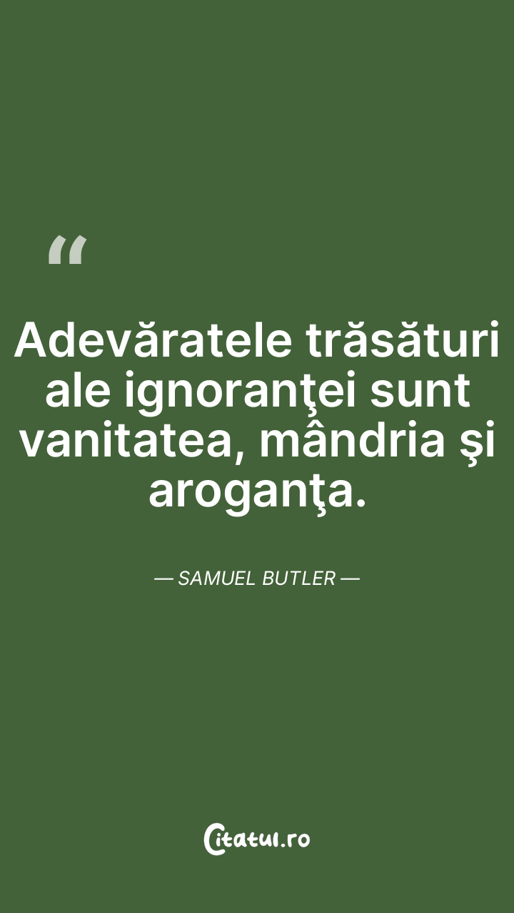 Adevăratele trăsături ale ignoranţei sunt vanitatea, mândria şi aroganţa. Samuel Butler
