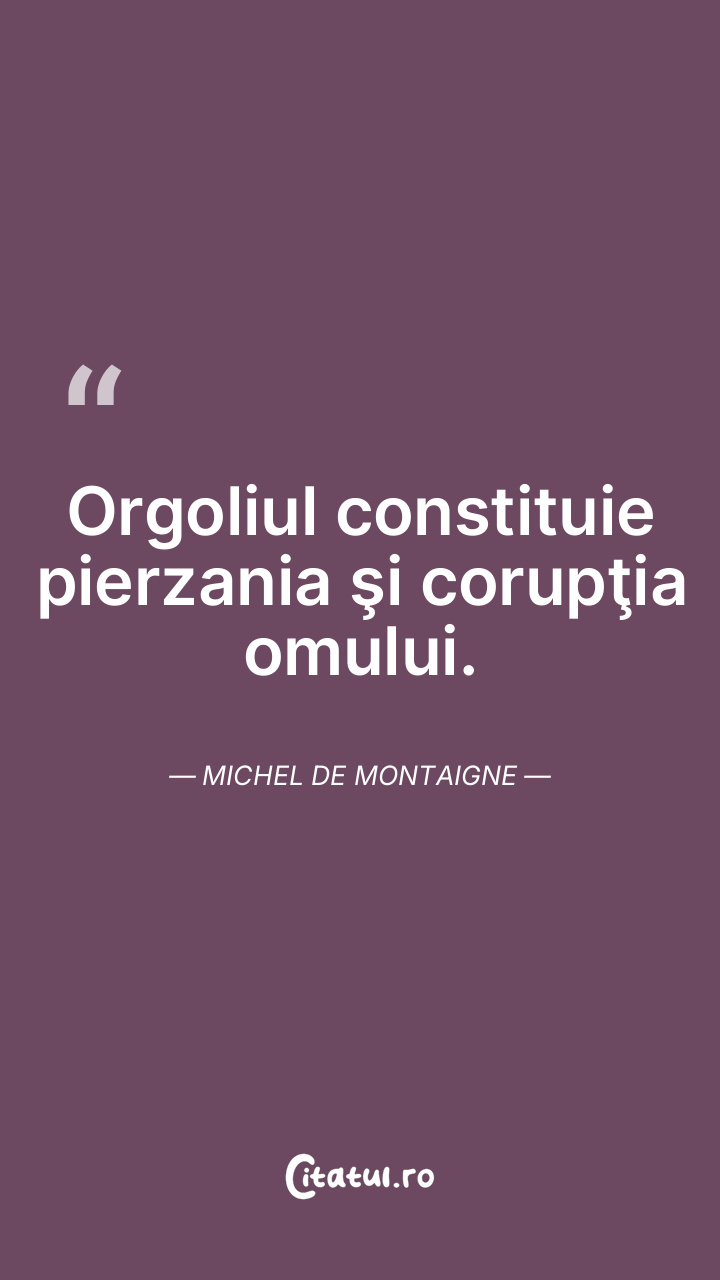 Orgoliul constituie pierzania şi corupţia omului. Michel de Montaigne
