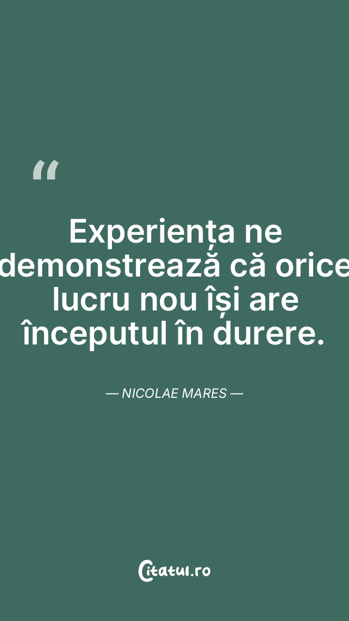 Experiența ne demonstrează că orice lucru nou își are începutul în durere. Nicolae Mares