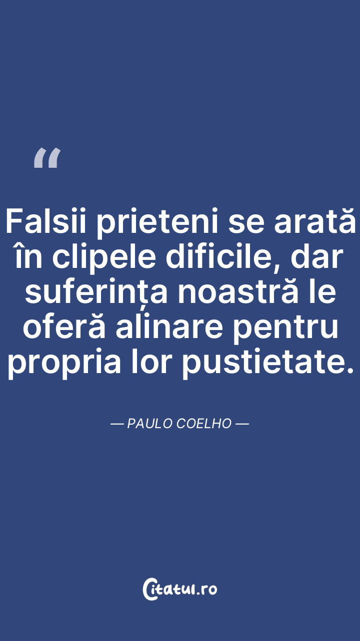 Falsii prieteni se arată în clipele dificile, dar suferința noastră le oferă alinare pentru propria lor pustietate. Paulo Coelho