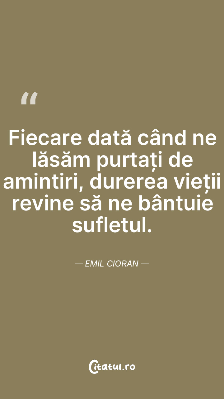 Fiecare dată când ne lăsăm purtați de amintiri, durerea vieții revine să ne bântuie sufletul. Emil Cioran