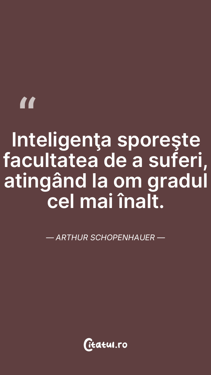 Inteligenţa sporeşte facultatea de a suferi, atingând la om gradul cel mai înalt. Arthur Schopenhauer