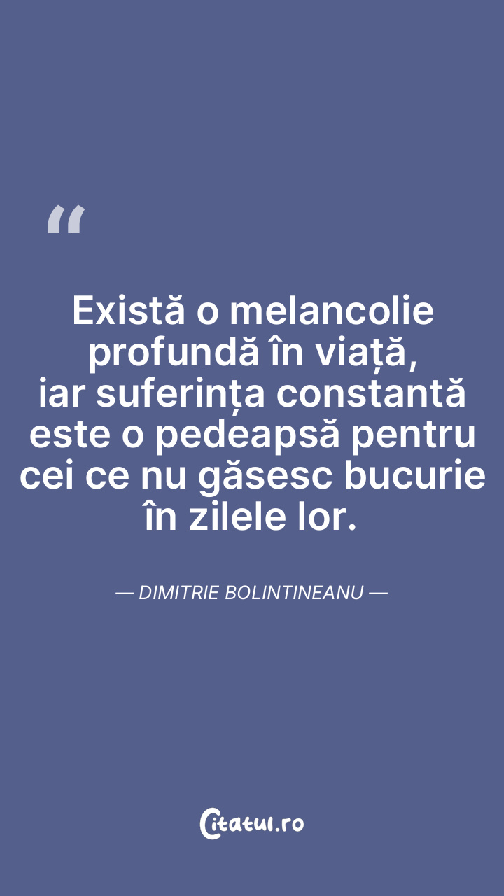 Există o melancolie profundă în viață, iar suferința constantă este o pedeapsă pentru cei ce nu găsesc bucurie în zilele lor. Dimitrie Bolintineanu