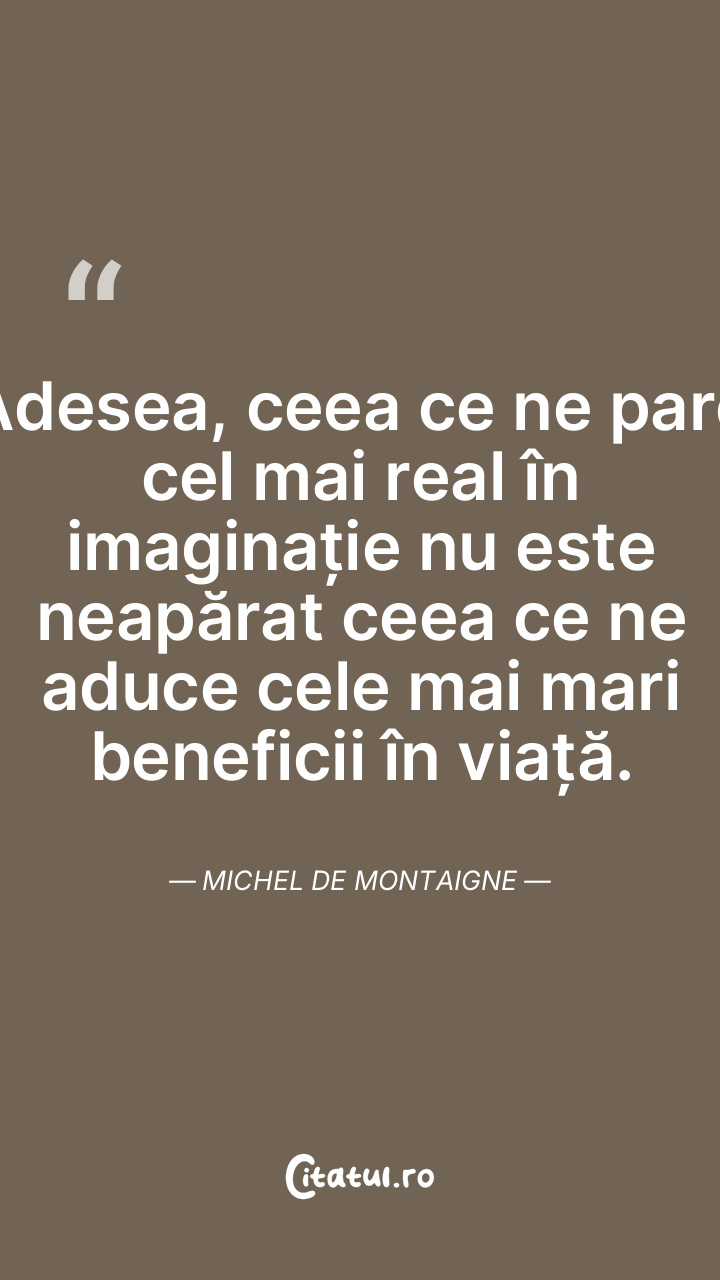 Adesea, ceea ce ne pare cel mai real în imaginație nu este neapărat ceea ce ne aduce cele mai mari beneficii în viață. Michel de Montaigne