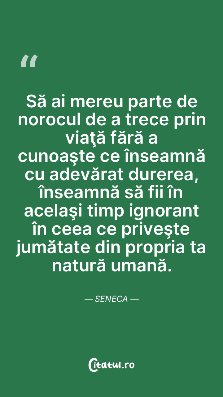 Să ai mereu parte de norocul de a trece prin viaţă fără a cunoaşte ce înseamnă cu adevărat durerea, înseamnă să fii în acelaşi timp ignorant în ceea ce priveşte jumătate din propria ta natură umană. Seneca