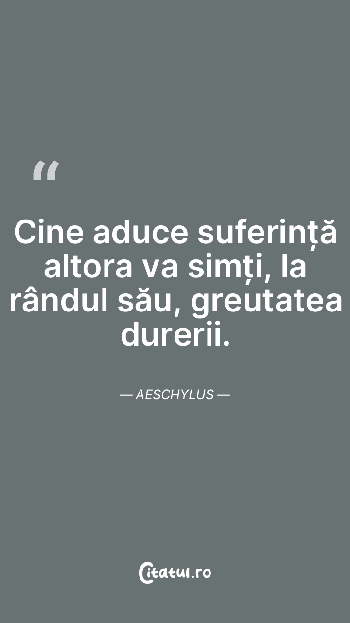 Cine aduce suferință altora va simți, la rândul său, greutatea durerii. Aeschylus