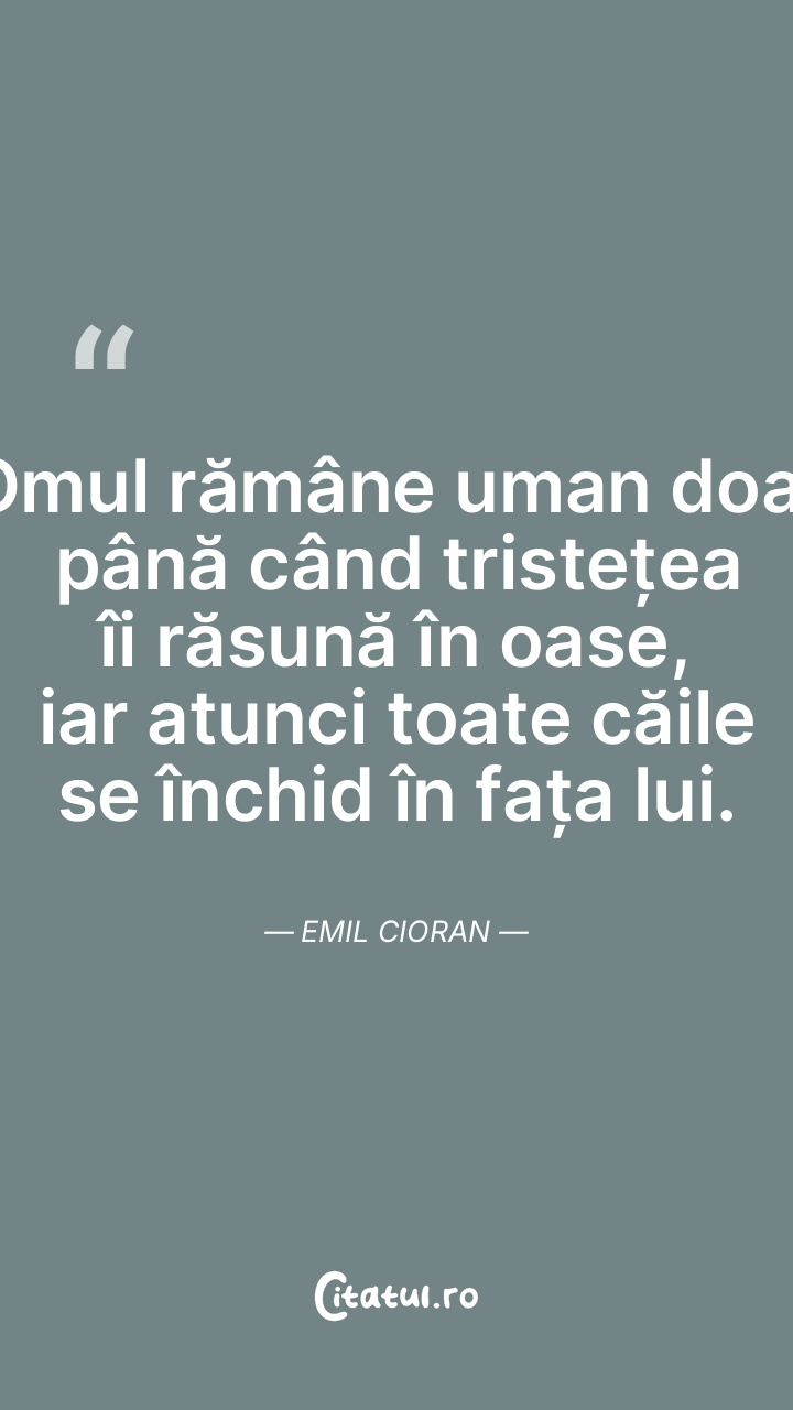 Omul rămâne uman doar până când tristețea îi răsună în oase, iar atunci toate căile se închid în fața lui. Emil Cioran