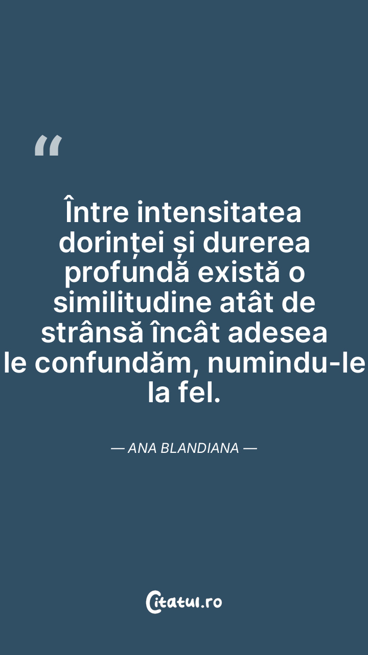 Între intensitatea dorinței și durerea profundă există o similitudine atât de strânsă încât adesea le confundăm, numindu-le la fel. Ana Blandiana