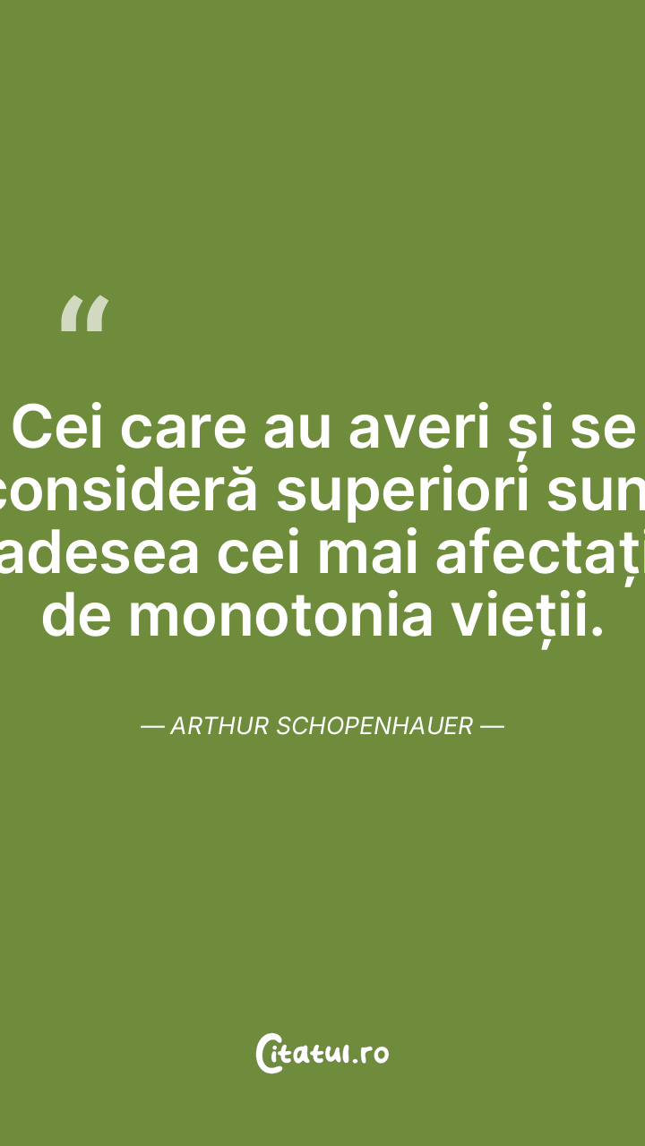 Cei care au averi și se consideră superiori sunt adesea cei mai afectați de monotonia vieții. Arthur Schopenhauer