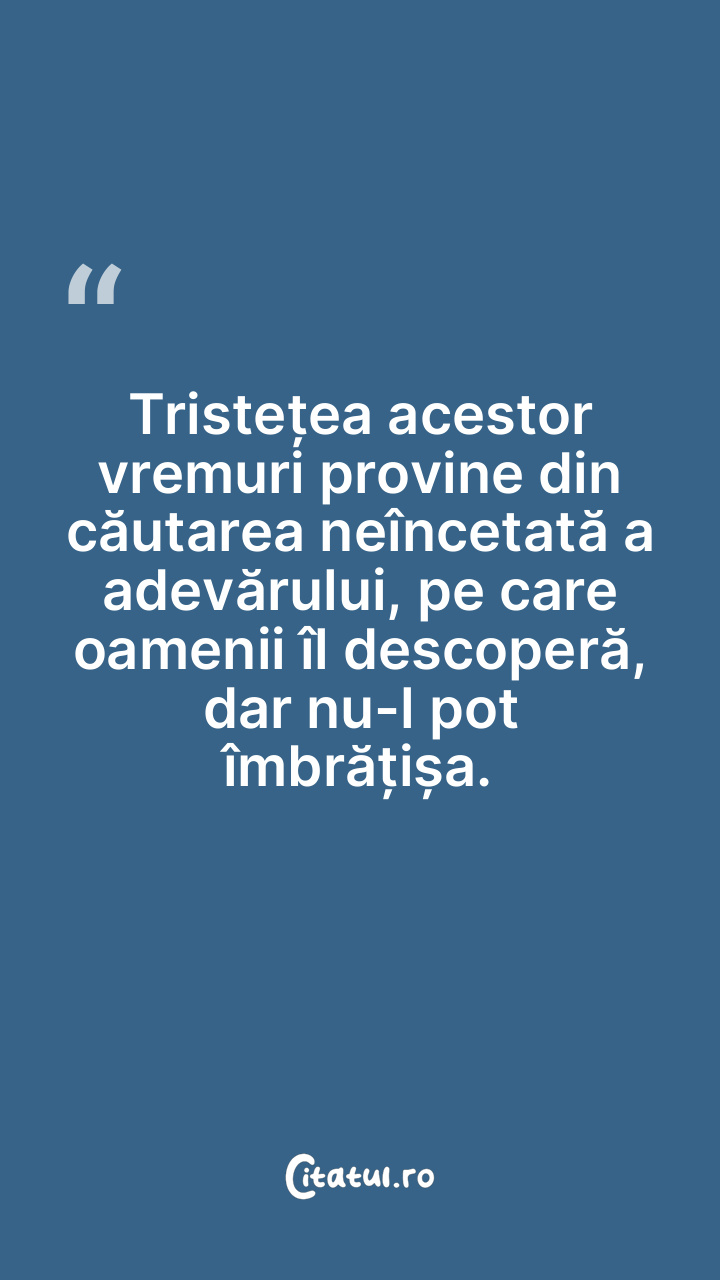 Tristețea acestor vremuri provine din căutarea neîncetată a adevărului, pe care oamenii îl descoperă, dar nu-l pot îmbrățișa.