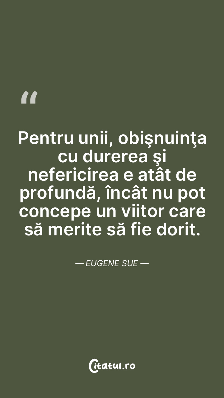 Pentru unii, obişnuinţa cu durerea şi nefericirea e atât de profundă, încât nu pot concepe un viitor care să merite să fie dorit. Eugene Sue