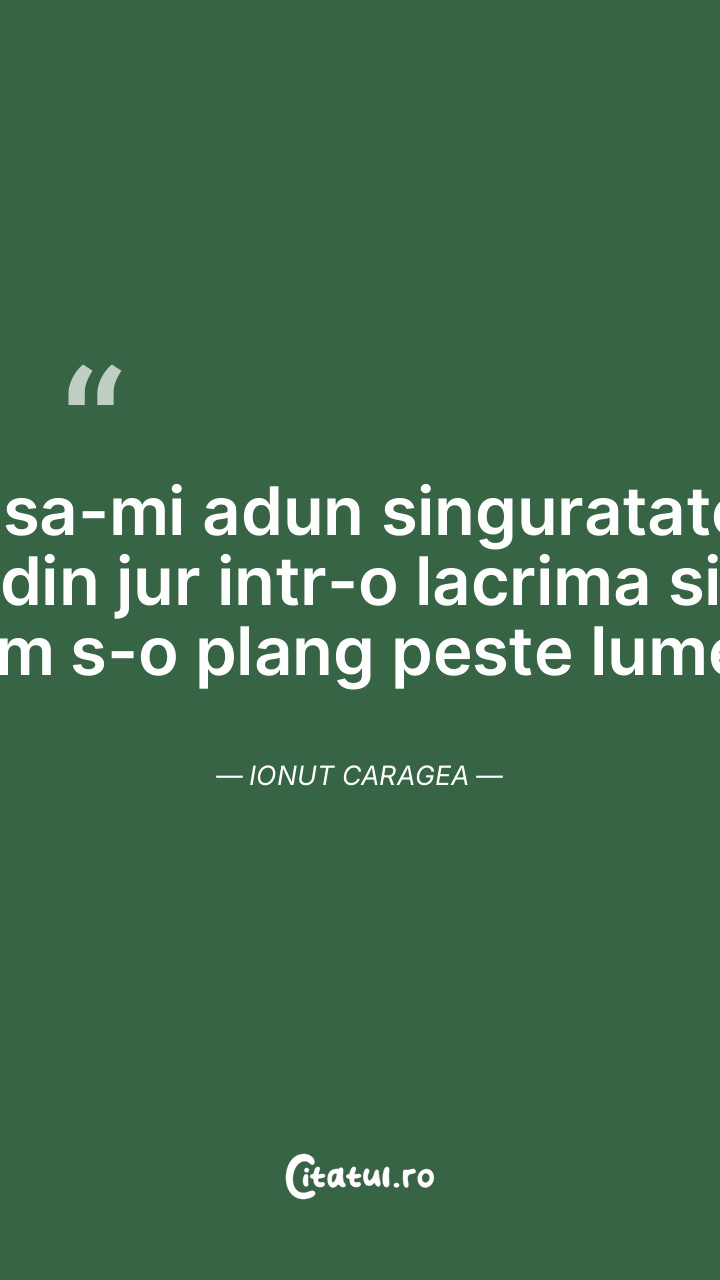 O sa-mi adun singuratatea din jur intr-o lacrima si am s-o plang peste lume. Ionut Caragea