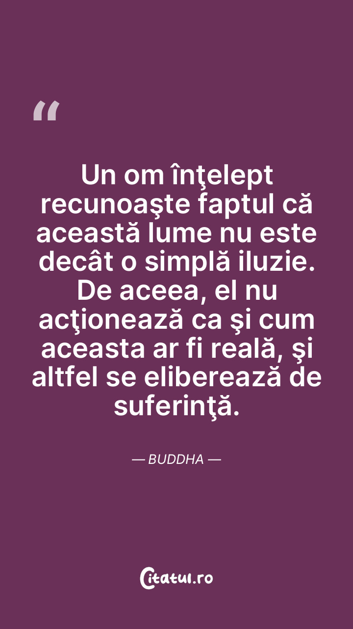 Un om înţelept recunoaşte faptul că această lume nu este decât o simplă iluzie. De aceea, el nu acţionează ca şi cum aceasta ar fi reală, şi altfel se eliberează de suferinţă. Buddha