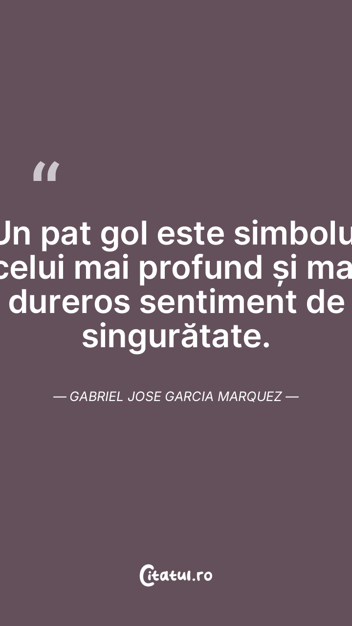 Un pat gol este simbolul celui mai profund și mai dureros sentiment de singurătate. Gabriel Jose Garcia Marquez