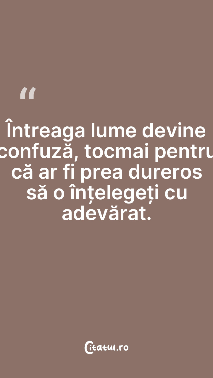 Întreaga lume devine confuză, tocmai pentru că ar fi prea dureros să o înțelegeți cu adevărat.
