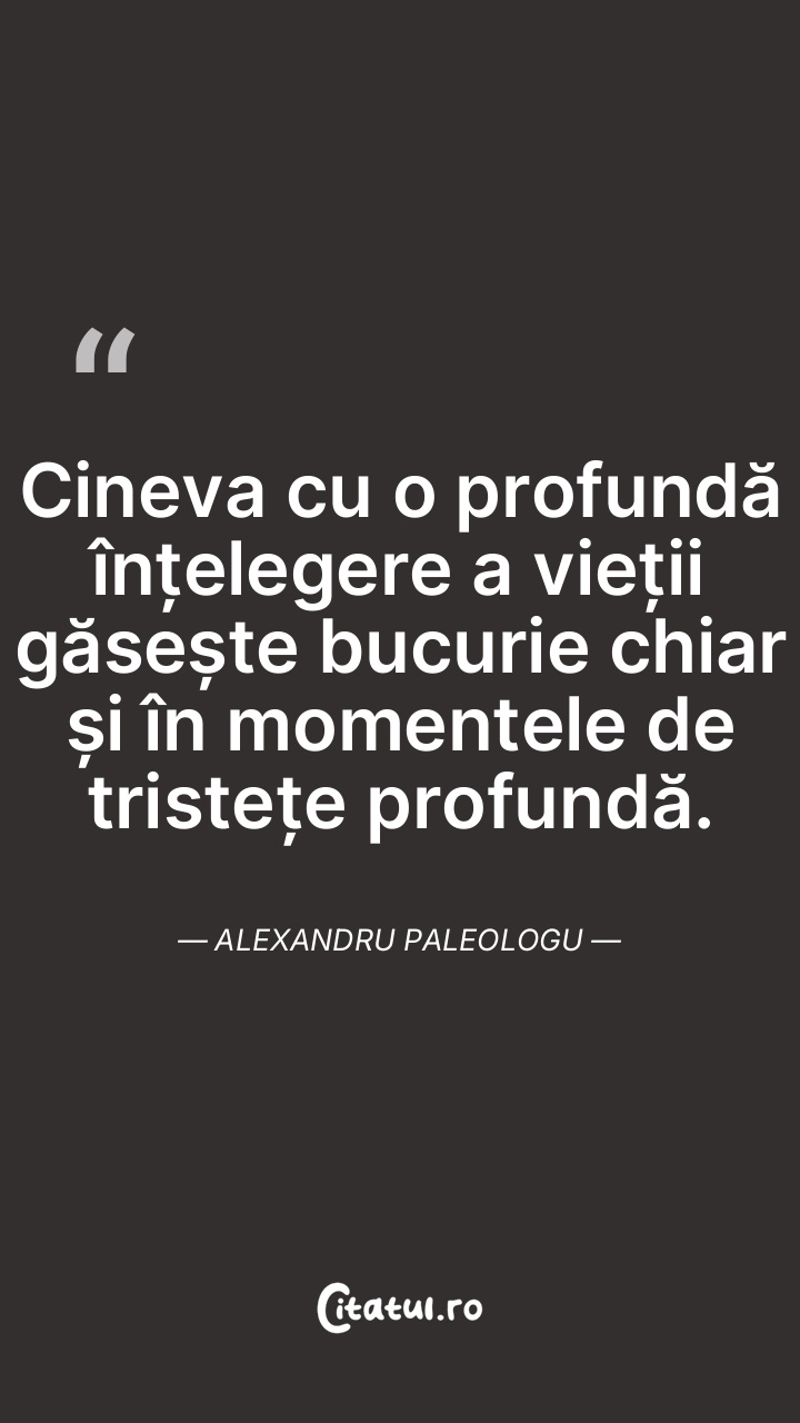 Cineva cu o profundă înțelegere a vieții găsește bucurie chiar și în momentele de tristețe profundă. Alexandru Paleologu