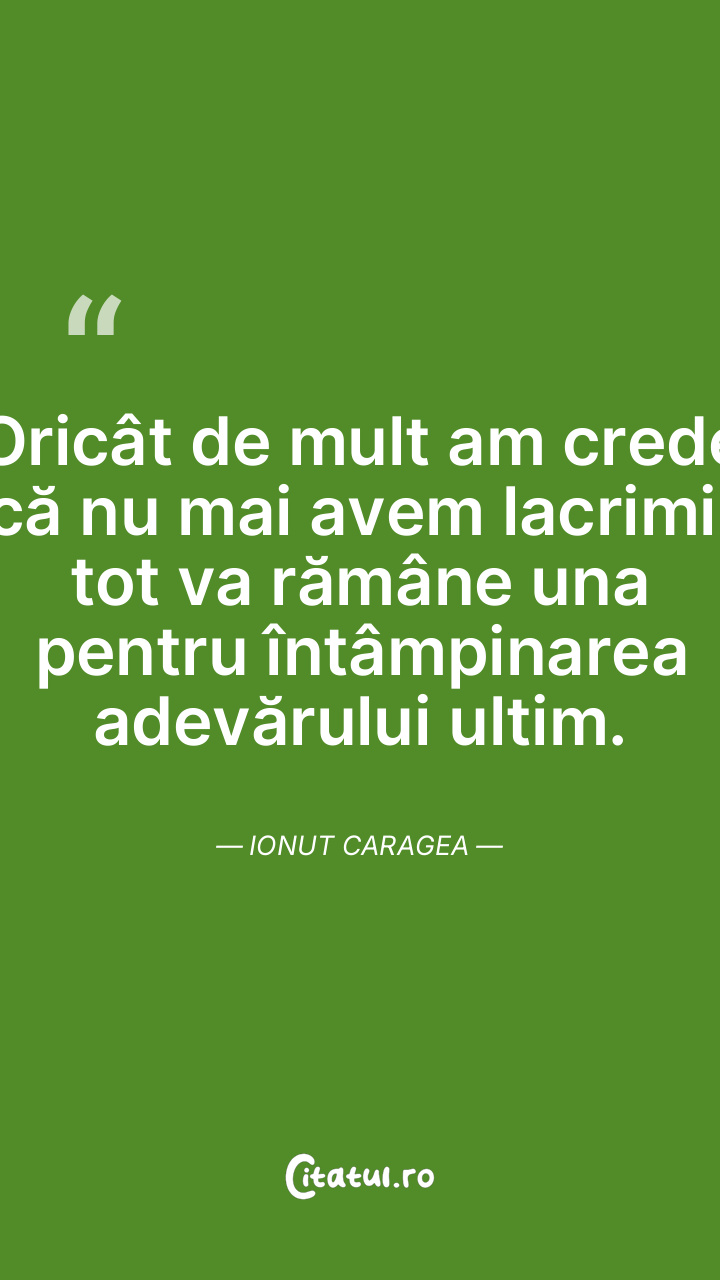 Oricât de mult am crede că nu mai avem lacrimi, tot va rămâne una pentru întâmpinarea adevărului ultim. Ionut Caragea