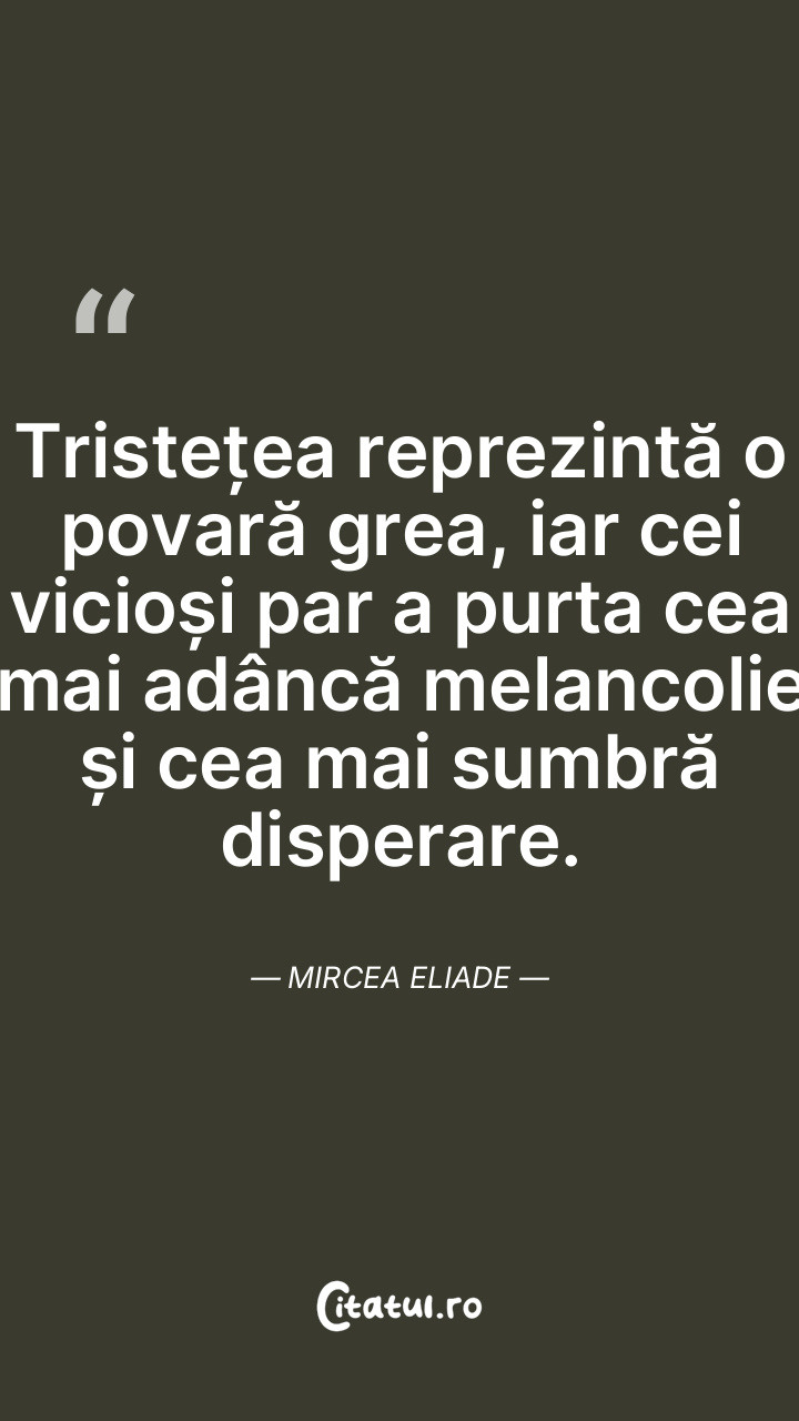 Tristețea reprezintă o povară grea, iar cei vicioși par a purta cea mai adâncă melancolie și cea mai sumbră disperare. Mircea Eliade