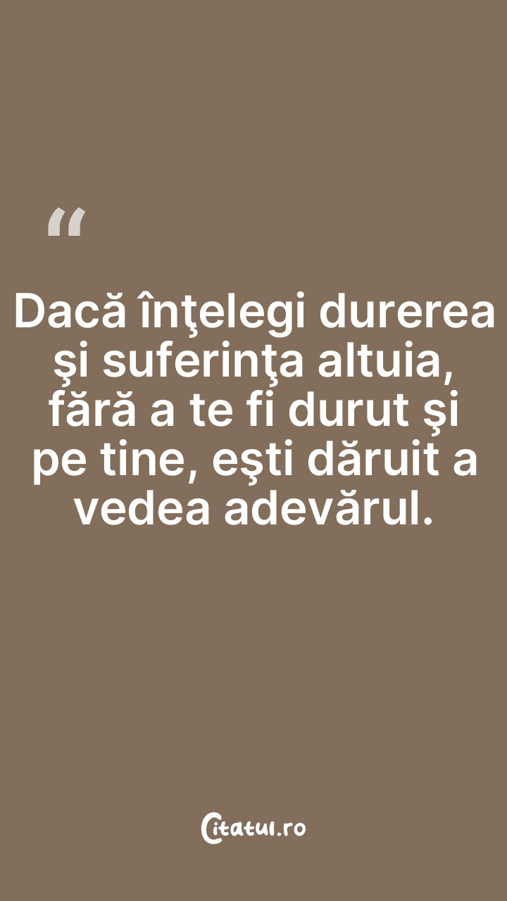 Dacă înţelegi durerea şi suferinţa altuia, fără a te fi durut şi pe tine, eşti dăruit a vedea adevărul.