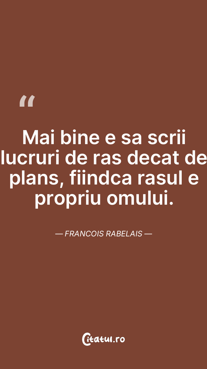 Mai bine e sa scrii lucruri de ras decat de plans, fiindca rasul e propriu omului. Francois Rabelais