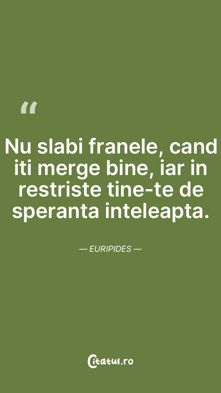 Nu slabi franele, cand iti merge bine, iar in restriste tine-te de speranta inteleapta. Euripides