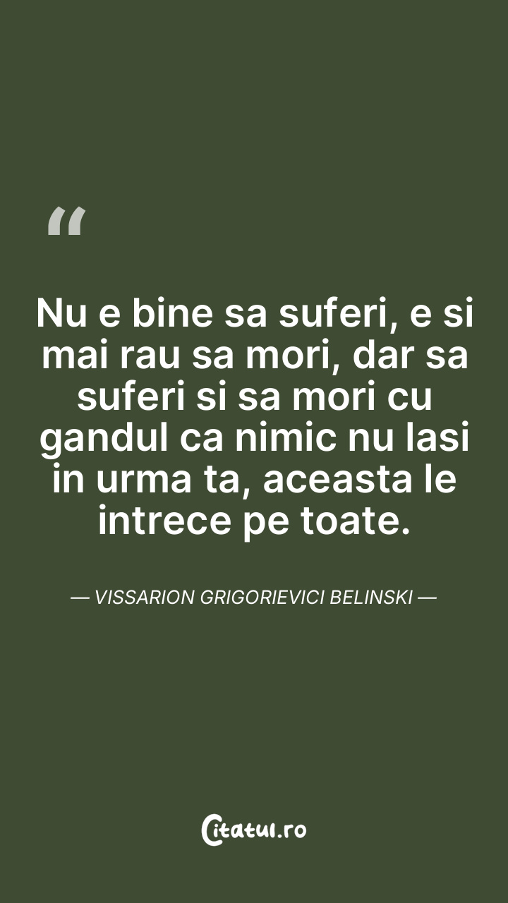 Nu e bine sa suferi, e si mai rau sa mori, dar sa suferi si sa mori cu gandul ca nimic nu lasi in urma ta, aceasta le intrece pe toate. Vissarion Grigorievici Belinski