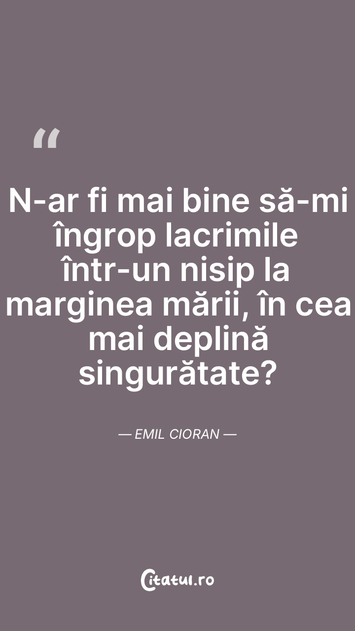 N-ar fi mai bine să-mi îngrop lacrimile într-un nisip la marginea mării, în cea mai deplină singurătate? Emil Cioran