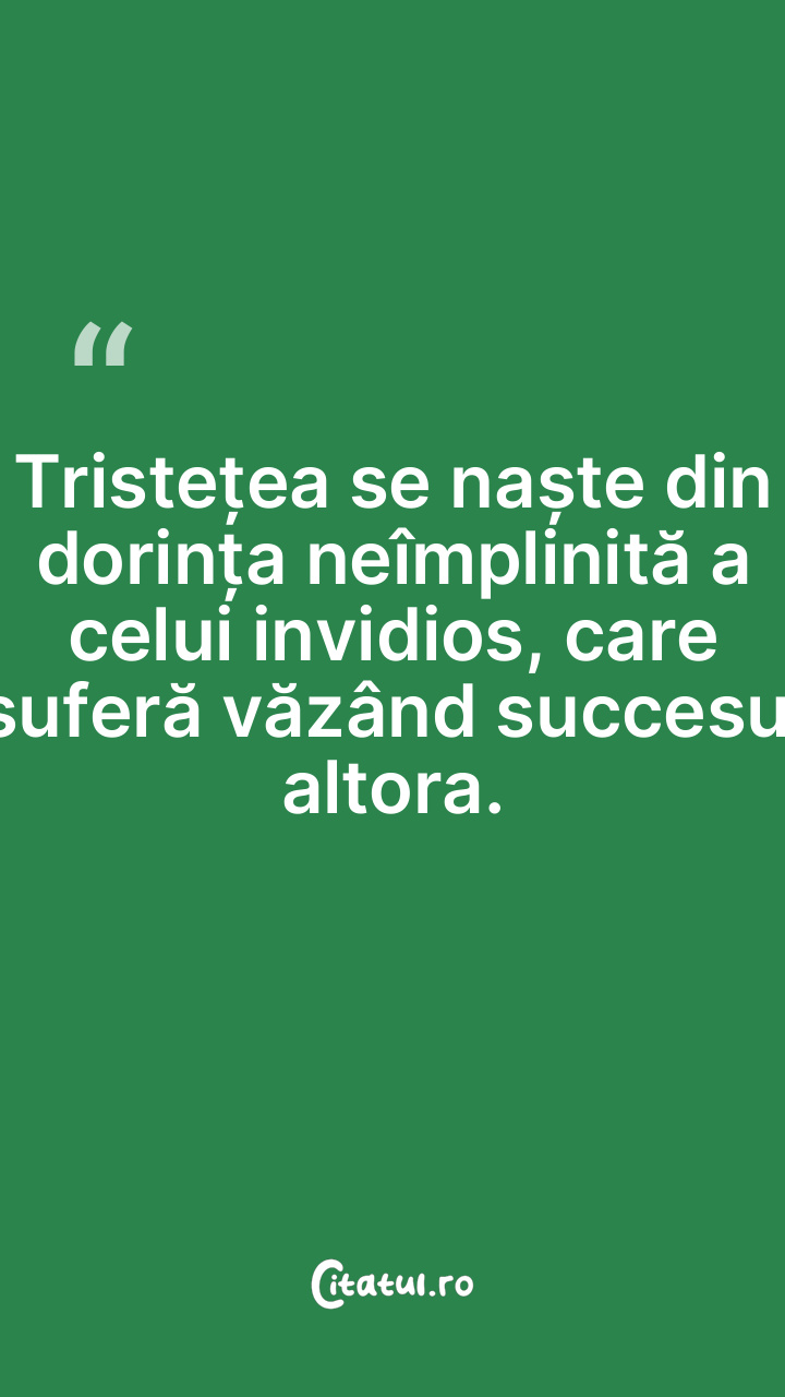 Tristețea se naște din dorința neîmplinită a celui invidios, care suferă văzând succesul altora.