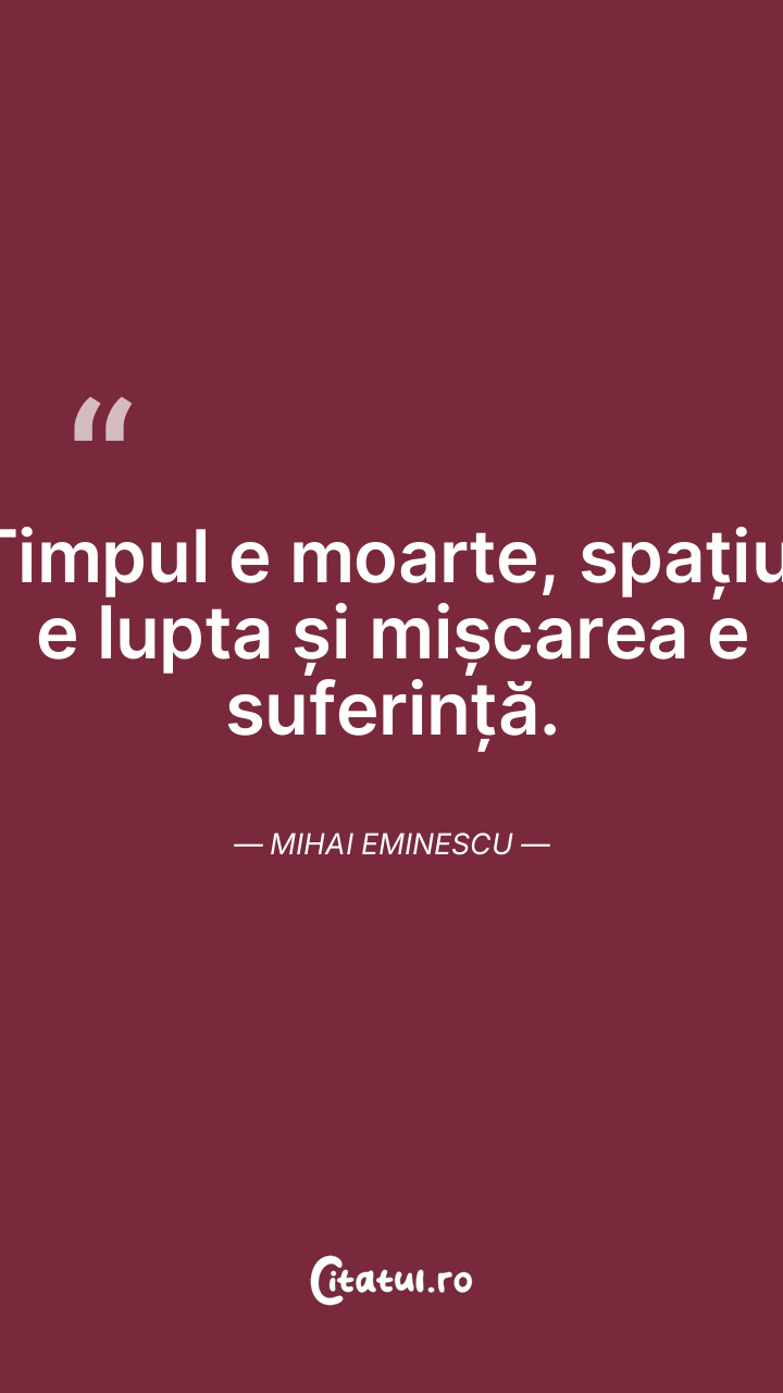 Timpul e moarte, spațiul e lupta și mișcarea e suferință. Mihai Eminescu