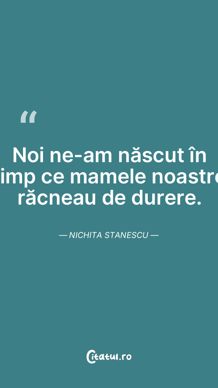 Noi ne-am născut în timp ce mamele noastre răcneau de durere. Nichita Stanescu