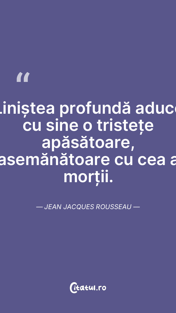 Liniștea profundă aduce cu sine o tristețe apăsătoare, asemănătoare cu cea a morții. Jean Jacques Rousseau