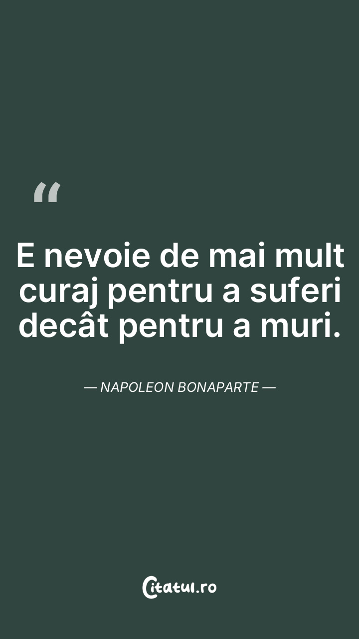 E nevoie de mai mult curaj pentru a suferi decât pentru a muri. Napoleon Bonaparte