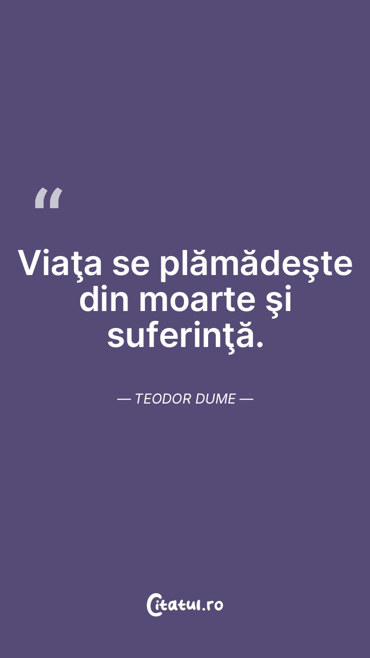 Viaţa se plămădeşte din moarte şi suferinţă. Teodor Dume