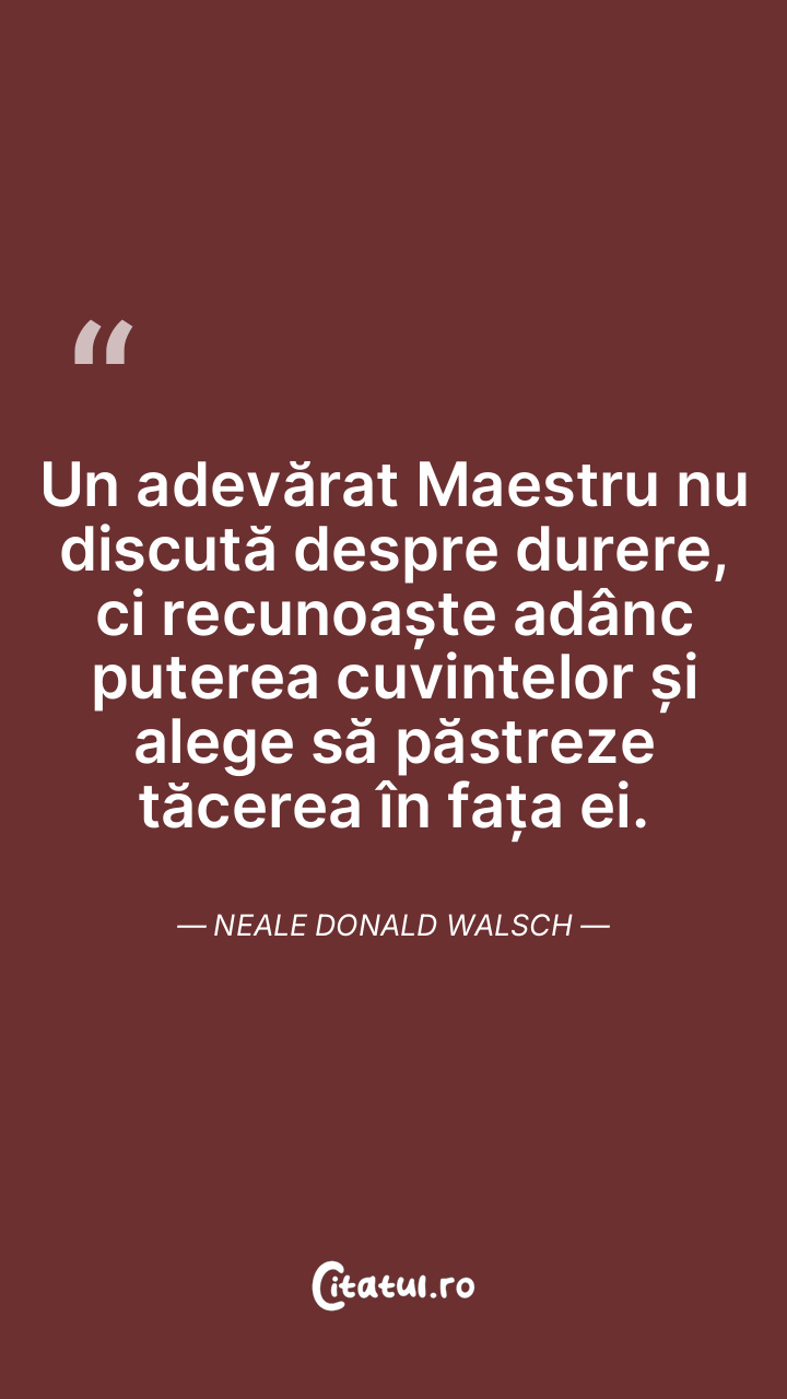 Un adevărat Maestru nu discută despre durere, ci recunoaște adânc puterea cuvintelor și alege să păstreze tăcerea în fața ei. Neale Donald Walsch