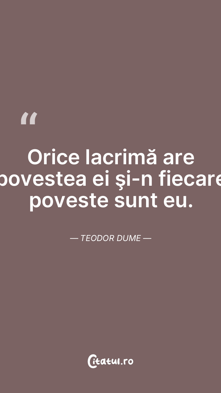 Orice lacrimă are povestea ei şi-n fiecare poveste sunt eu. Teodor Dume