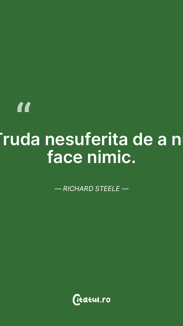Truda nesuferita de a nu face nimic. Richard Steele