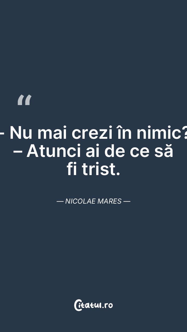 - Nu mai crezi în nimic? – Atunci ai de ce să fi trist. Nicolae Mares