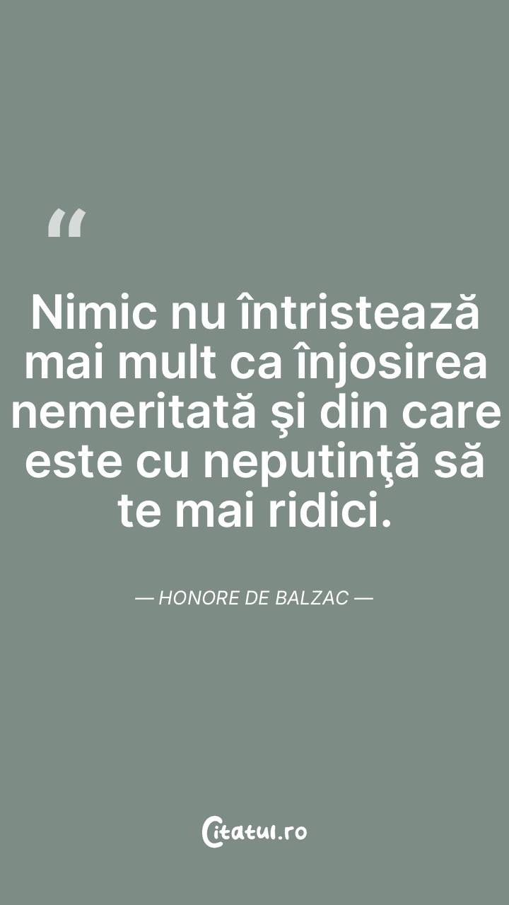 Nimic nu întristează mai mult ca înjosirea nemeritată şi din care este cu neputinţă să te mai ridici. Honore de Balzac