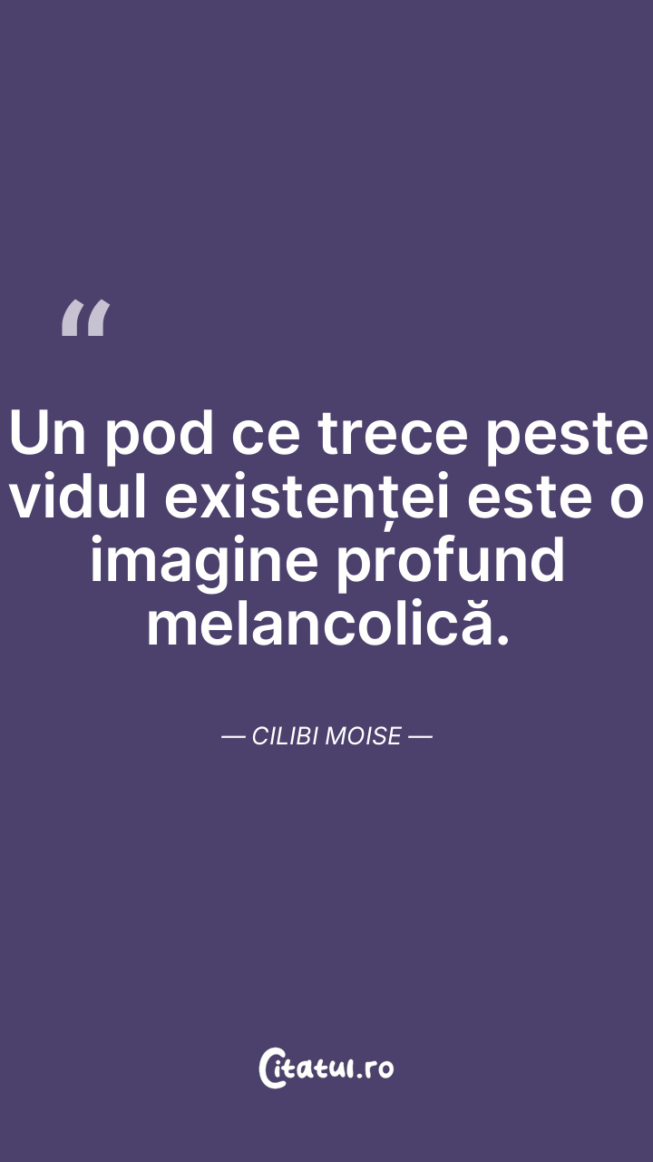 Un pod ce trece peste vidul existenței este o imagine profund melancolică. Cilibi Moise