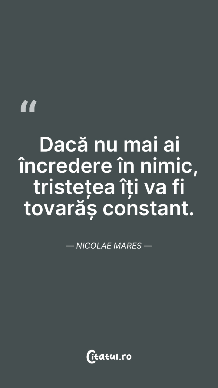 Dacă nu mai ai încredere în nimic, tristețea îți va fi tovarăș constant. Nicolae Mares
