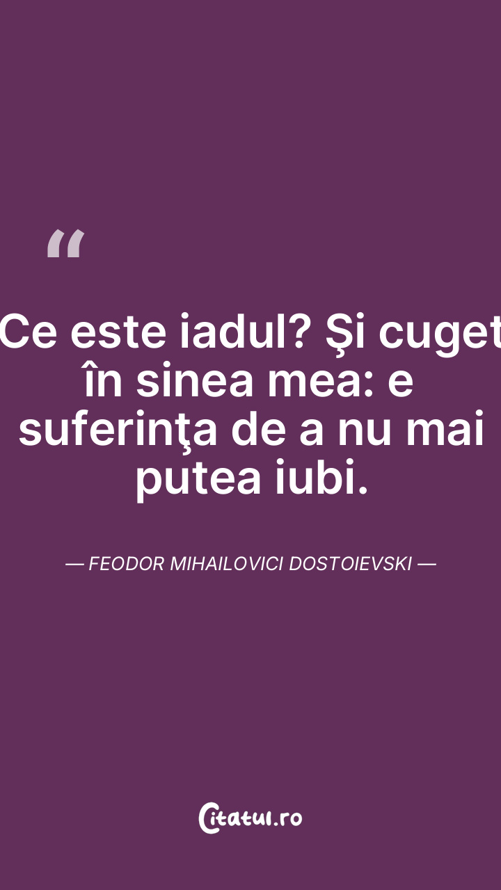 Ce este iadul? Şi cuget în sinea mea: e suferinţa de a nu mai putea iubi. Feodor Mihailovici Dostoievski